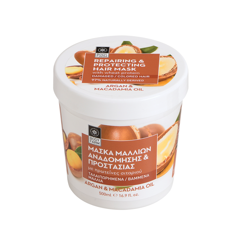 Hair mask, rich in Argan oil and Macadamia oil, known for their restorative and nourishing properties that protect hair from damage, while giving them unique softness and shine. Its composition, rich in organic Aloe, Olive Oil and Wheat Proteins, helps restore damaged hair, while shielding their color and shine.